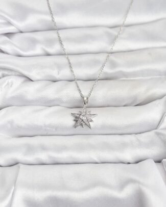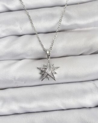 316L Çelik Zincir Gümüş Renk Kutup Yıldızı Model Zirkon Taşlı Kadın Kolye