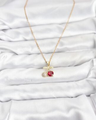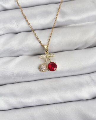 316L Çelik Zincir Gold Renk Kiraz Model Zirkon Taşlı Kadın Kolye