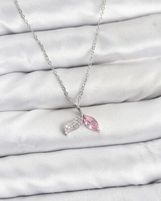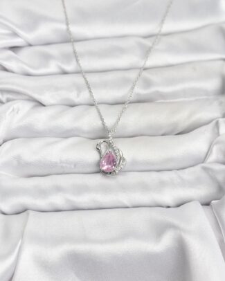 316L Çelik Zincir Gümüş Renk Pembe Kuğu Model Zirkon Taşlı Kadın Kolye