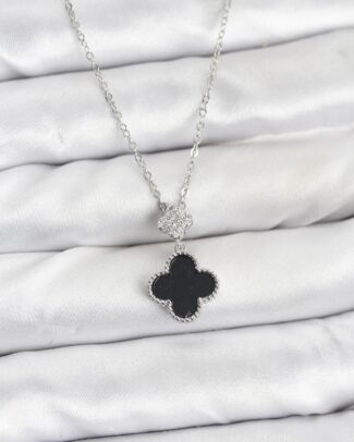 316L Çelik Zincir Gümüş Renk Yonca Model Zirkon Taşlı Kadın Kolye