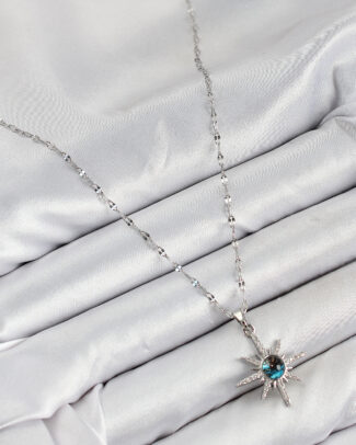 316L Çelik Zirkon Taşlı Kutup Yıldızı Model Gümüş Renk Kadın Kolye