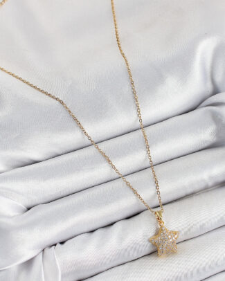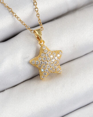 316L Çelik Zirkon Taşlı Yıldız Model Gold Renk Kadın Kolye