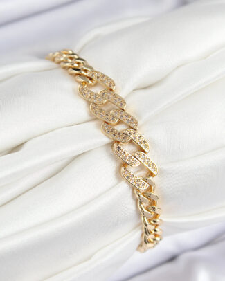 Pirinç Zirkon Taşlı Ezme Küba Zincir Model Gold Renk Kadın Bileklik