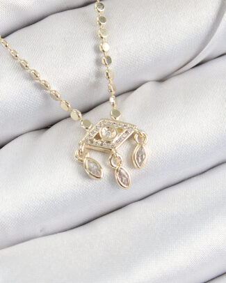 Pirinç Zirkon Taşlı Sallantılı Göz Model Ezme Zincir Gold Renk Kadın Kolye
