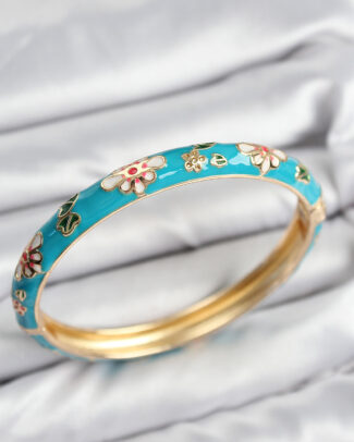 Mineli Pirinç Mavi Çiçek Motifli Gold Kadın Kelepçe