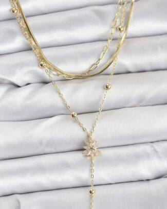 Pirinç Gold Renk Kutup Yıldızı Model Detaylı 3’lü Kombin Y Kadın Kolye