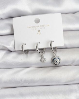 Nazar Model Gümüş Renk Pirinç 3’lü Kadın Küpe Seti