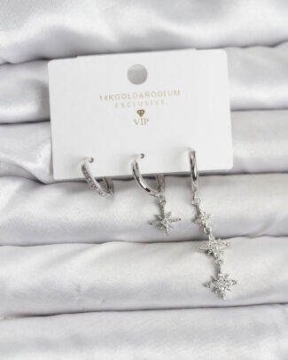 Kutup Yıldızı Model Gümüş Renk Pirinç 3’lü Kadın Küpe Seti