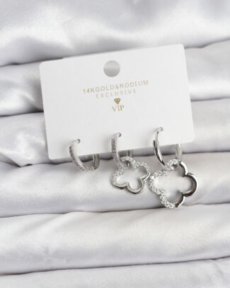 Yonca Model Gümüş Renk Pirinç 3’lü Kadın Küpe Seti