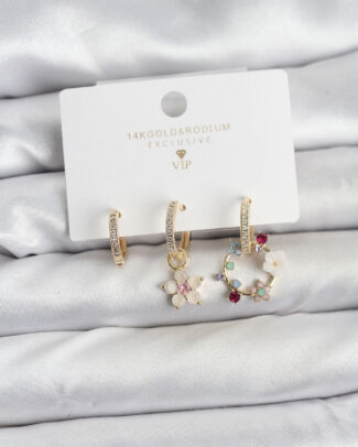 Çiçek Model Gold Renk Pirinç 3’lü Kadın Küpe Seti