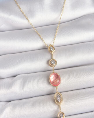 Pirinç Zincir Pembe Gold Renk Zirkon Taşlı Y Kolye
