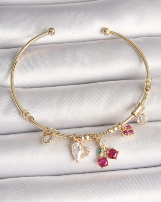 Pirinç Gold Renk Sallantı Kırmızı Zirkon Taşlı Kiraz Figür Charm Kadın Bileklik