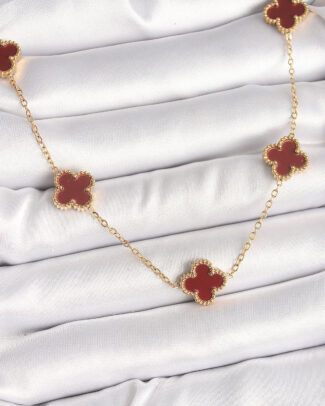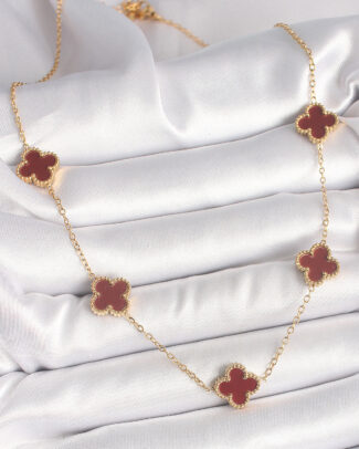 316L Çelik Gold Renk Zincir Bordo Yonca Model Kadın Kolye