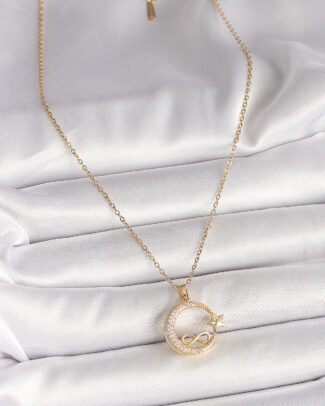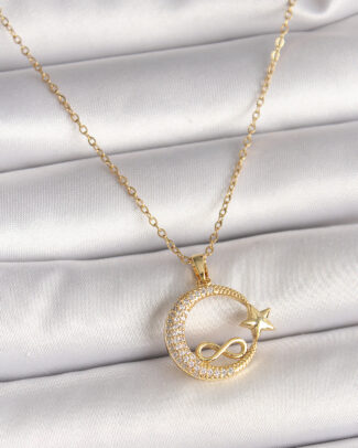 316L Çelik Gold Renk Zincir Zirkon Taşlı Ay Yıldız Model Sonsuzluk Detay Kadın Kolye