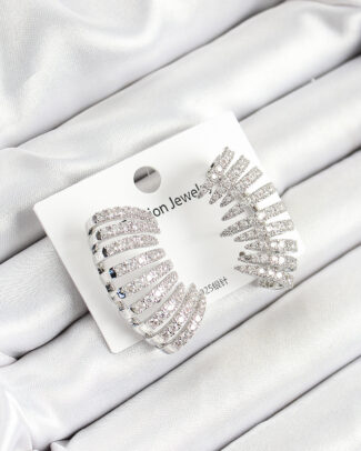 Pirinç Zirkon Taşlı Çoklu Görünümlü Model Gümüş Renk Kadın Küpe