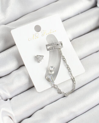 Pirinç Üçgen Figürlü Zirkon Taşlı Gümüş Renk 3’lü Kıkırdak Kadın Küpe Set