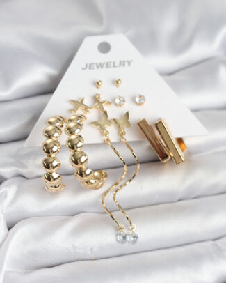 Pirinç Gold Renk 6 Çift Kadın Küpe Seti