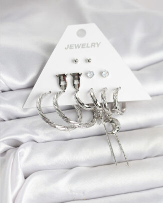 Gümüş Renk 6’lı Pirinç Küpe Seti
