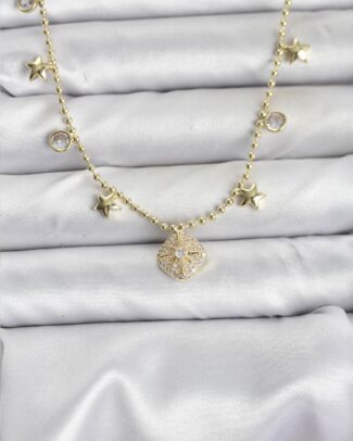 Pirinç Gold Renk Zirkon Taşlı Kutup Yıldızı Model Kadın Kolye