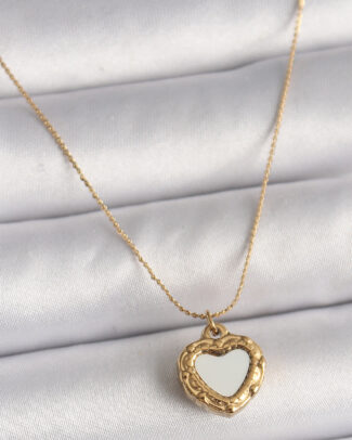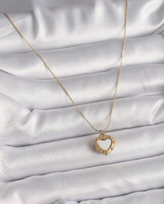 316L Çelik Gold Renk Zincir Sedefli Kalp Model Kadın Kolye