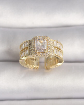 Pirinç Gold Renk Ayarlanabilir Baget Zirkon Taş Model Kadın Yüzük