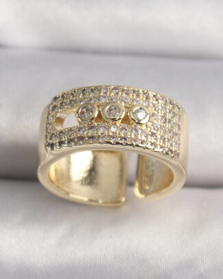 Pirinç Gold Renk Zirkon Taşlı Messika Model Ayarlanabilir Kadın Yüzük
