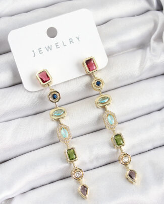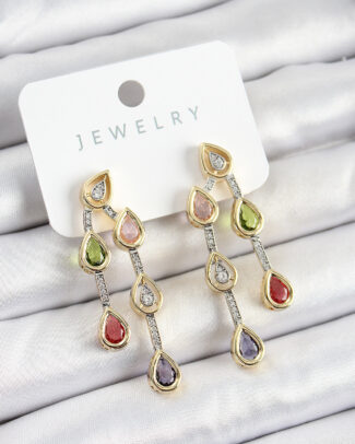 Pirinç Çoklu Damla Model Karşık Zirkon Taşlı Gold Ve Gümüş Renk Kadın Küpe
