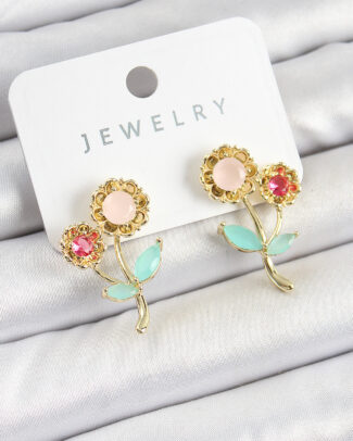 Pirinç Renkli Zirkon Taşlı Papatya Model Gold Renk Kadın Küpe
