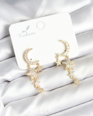 Ay ve Yıldız Model Gold Renk Pirinç Kadın Küpe