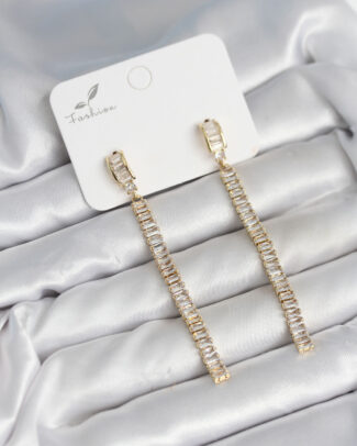 Pirinç Gold Renk Zirkon Taşlı Kadın Küpe