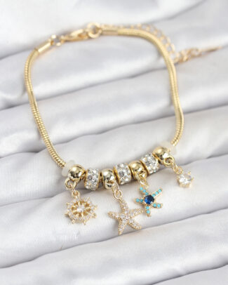 Pirinç Gold Renk Deniz Tema Charmlı Kadın Bileklik