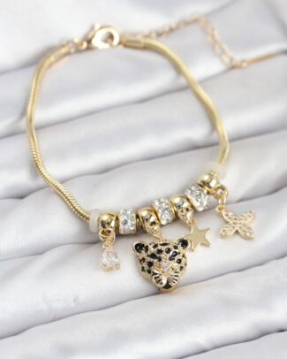 Pirinç Gold Renk Kaplan Model Charmlı Kadın Bileklik