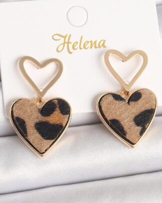 Pirinç Gold Renk Sallantı Leopar Kalp Model Kadın Küpe