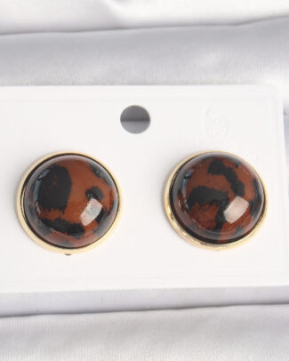 Pirinç Gold Renk 3D Daire Leopar Model Kadın Küpe
