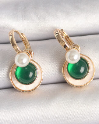 Pirinç Gold Renk Beyaz Yeşil Sallantı Mineli Kadın Küpe