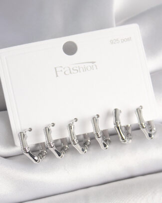 925 Ayar Gümüş Çivi Pirinç Gümüş Renk Bambu Halka Model Kadın Küpe Seti