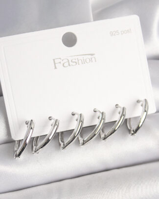 925 Ayar Gümüş Çivi Pirinç Gümüş Renk Üçgen Model Kadın Küpe Seti