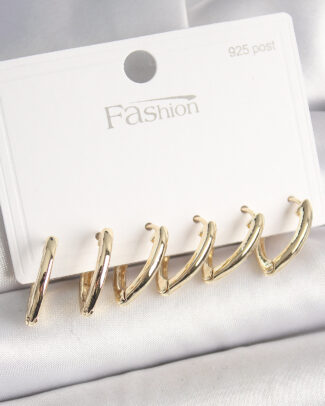 925 Ayar Gümüş Çivi Pirinç Gold Renk Üçgen Model Kadın Küpe Seti