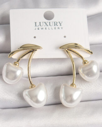 Pirinç Gold Renk Beyaz İnci Kiraz Model Kadın Küpe