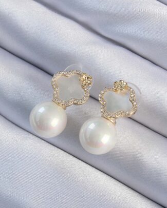 Pirinç Gümüş Renk Zirkon Taşlı Çiçek Model Kadın Küpe