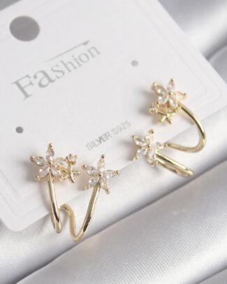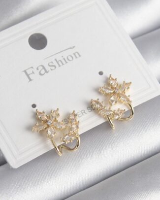 Pirinç Altın Renk Zirkon Taşlı Minimal Çiçek Tasarımlı Kadın Küpe