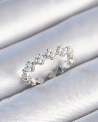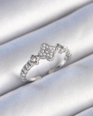 Pirinç Gümüş Renk İncili Yonca Model Kadın Yüzük