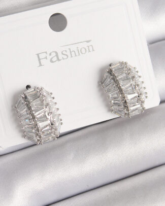 Pirinç Gümüş Renk Zirkon Taşlı Kaplumbağa Kabuğu Model Kadın Küpe