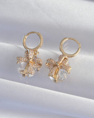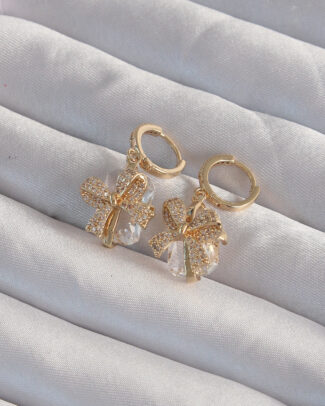 Pirinç Gold Renk İri Zirkon Taşlı Fiyonk Model Halka Küpe
