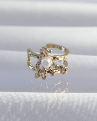 Pirinç Gold Renk İncili Ahtapot Earcuff Küpe