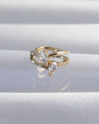 Pirinç Gold Renk Zirkon Taşlı Damla Earcuff Küpe