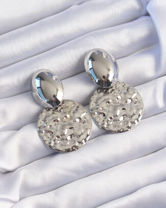 Pirinç Gümüş Renk Ezme Plaka Küpe