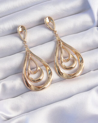Pirinç Gold Renk Kıvrımlı Damla Görünüm Sallantılı Küpe
