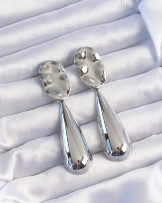 Pirinç Gümüş Renk Uzun Bombeli Ezme Plaka Küpe