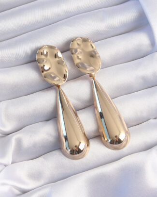 Pirinç Gold Renk Uzun Bombeli Ezme Plaka Küpe